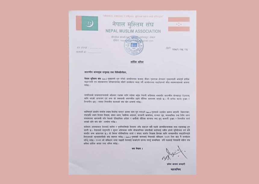 संविधान २०७२ भित्रै जेनजीको माग सम्बोधन गर्नुपर्ने : मुस्लिम संघ