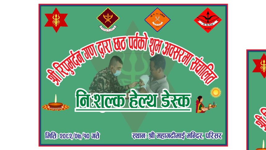 छठ पर्वमा भक्तजनको स्वास्थ्य सुरक्षालाई ध्यानमा राख्दै सो डेस्कमार्फत प्राथमिक उपचार र आवश्यक स्वास्थ्य परामर्श प्रदान गरिने गणका प्रमुख सेनानी अशोक कुमार क्षेत्रीले बताएका छन ।