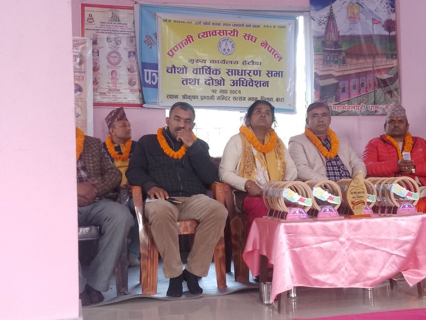सिमरा :प्रणामी व्यावसायी संघ नेपालको चौथो केन्द्रीय वार्षिक साधारण सभा तथा दोस्रो महाधिवेशनले पुनः विष्णुप्रसाद वाग्लेलाई सर्वसम्मत अध्यक्षमा निर्वाचित गरेको छ।