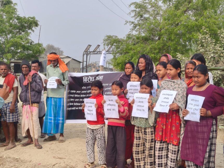 मिनाक्षी एग्रोगेट क्रसर उद्योगले प्रदुषण फैलाई गाउँघरमा जनधनको क्षति तथा गाउँ समाजलाई विभिन्न किसिमका रोग फैलाएको भन्दै विरोध प्रदर्शन भएको हो।